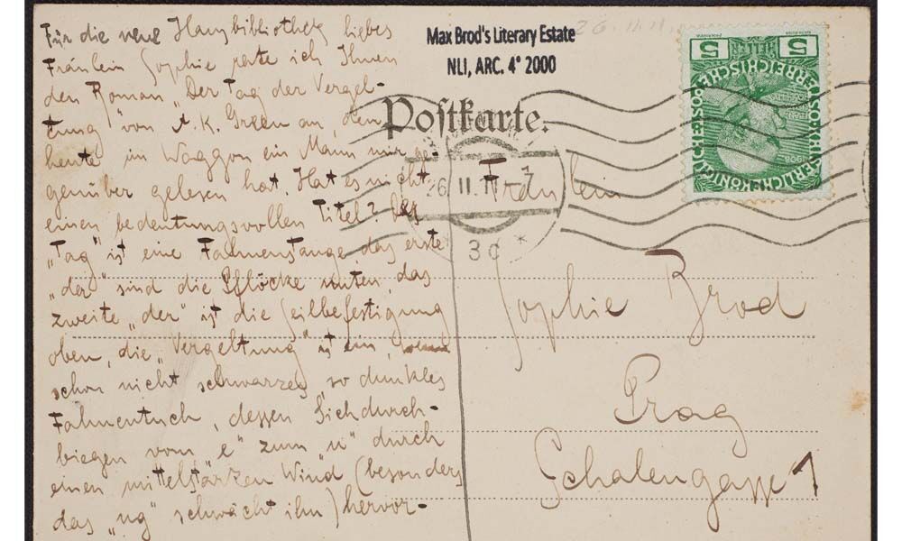 Kafka’nın el yazısıyla 1911 yılında İsviçre’ye, İtalya’ya ve Fransa’ya yaptığı seyahatlerin notları ile Max ve Sophie Brod’a yazılan mektupların yanı sıra Kafka’nın çizimleri yine koleksiyon içinde sergileniyor.