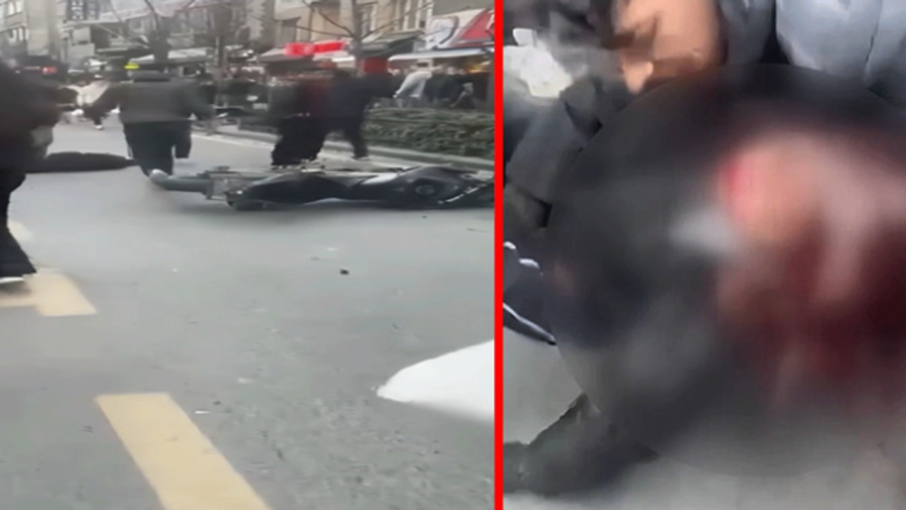 Doğan Can CESUR / İSTANBUL (DHA)- KAĞITHANE'de motosikletle ilerleyen sürücü M.K. (16), karşıdan karşıya geçmeye çalışan M.S.H. adlı yayaya çarptı. Çarpmanın etkisiyle yaya M.S.H. ile motosiklette yolcu olarak bulunan sürücünün kız arkadaşı G.İ. (16) yaralandı. Kazadan sonra olay yerinden kaçan ve motosikletini arkadaşlarının sakladığı öğrenilen sürücü polis ekipleri tarafından yakalandı. Ehliyetsiz olduğu tespit edilen sürücüye ve araç sahibine toplam 146 bin 217 lira para cezası uygulandı. Kaza anı güvenlik kamerasına yansıdı.