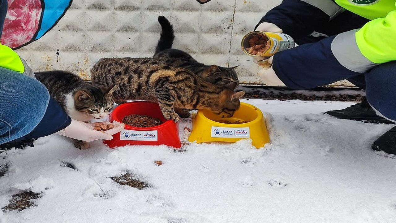 Bursa Büyükşehir Belediyesi Sağlık İşleri Dairesi Başkanlığına bağlı Veteriner Hizmetleri Şube Müdürlüğü ekipleri, yıl boyu aralıksız süren sahipsiz sokak hayvanlarına yönelik besleme faaliyetlerini kar yağışının etkili olmasıyla birlikte daha geniş bir alanda sürdürüyor. Soğuk hava ve kar yağışından dolayı yiyecek bulmakta zorlanan sokak hayvanları için tonlarca mama belirli bölgelere bırakılıyor.