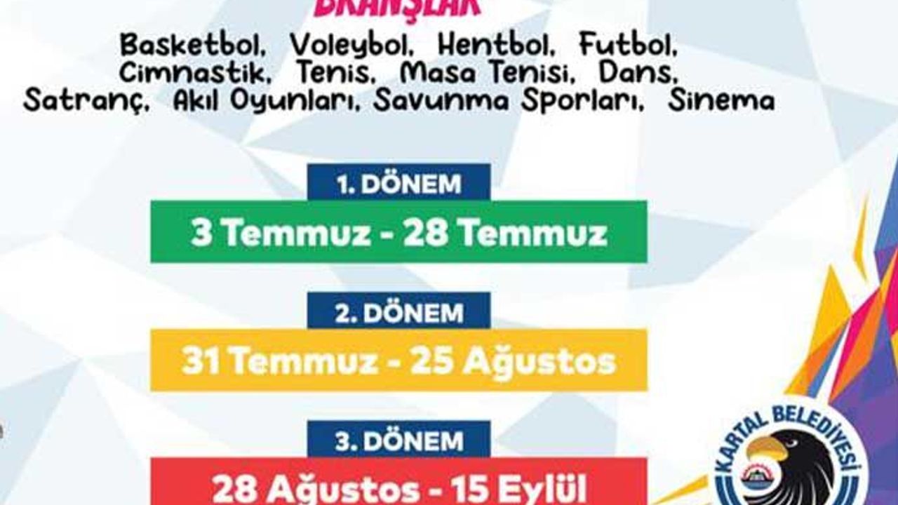 Kartal Belediyesi Gençlik ve Spor Hizmetleri Müdürlüğü’nün, çocuk ve gençlerin spor ile erken yaşta tanışmalarını, hayatlarında spora daha çok yer vermelerini ve yaz tatillerini daha verimli geçirmelerini sağlamak amacı ile “Spora Adım At Kartal’a Hareket Kat” sloganıyla başlattığı Ücretsiz Yaz Spor Eğitimleri için www.kartal.bel.tr üzerinden kayıtları almaya başladı.