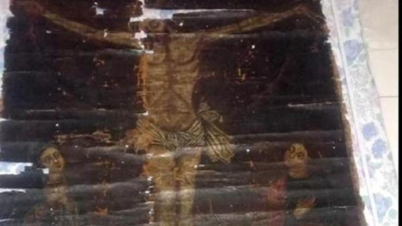 Kayseri'de polisin plazadaki iş yerine düzenlediği operasyonda, 13'üncü yüzyıla ait 5 milyon TL değerinde olan Hz. İsa'nın çarmıha gerilişinin resmedildiği tarihi tablo ele geçirildi. İş yeri sahibi gözaltına alındı.