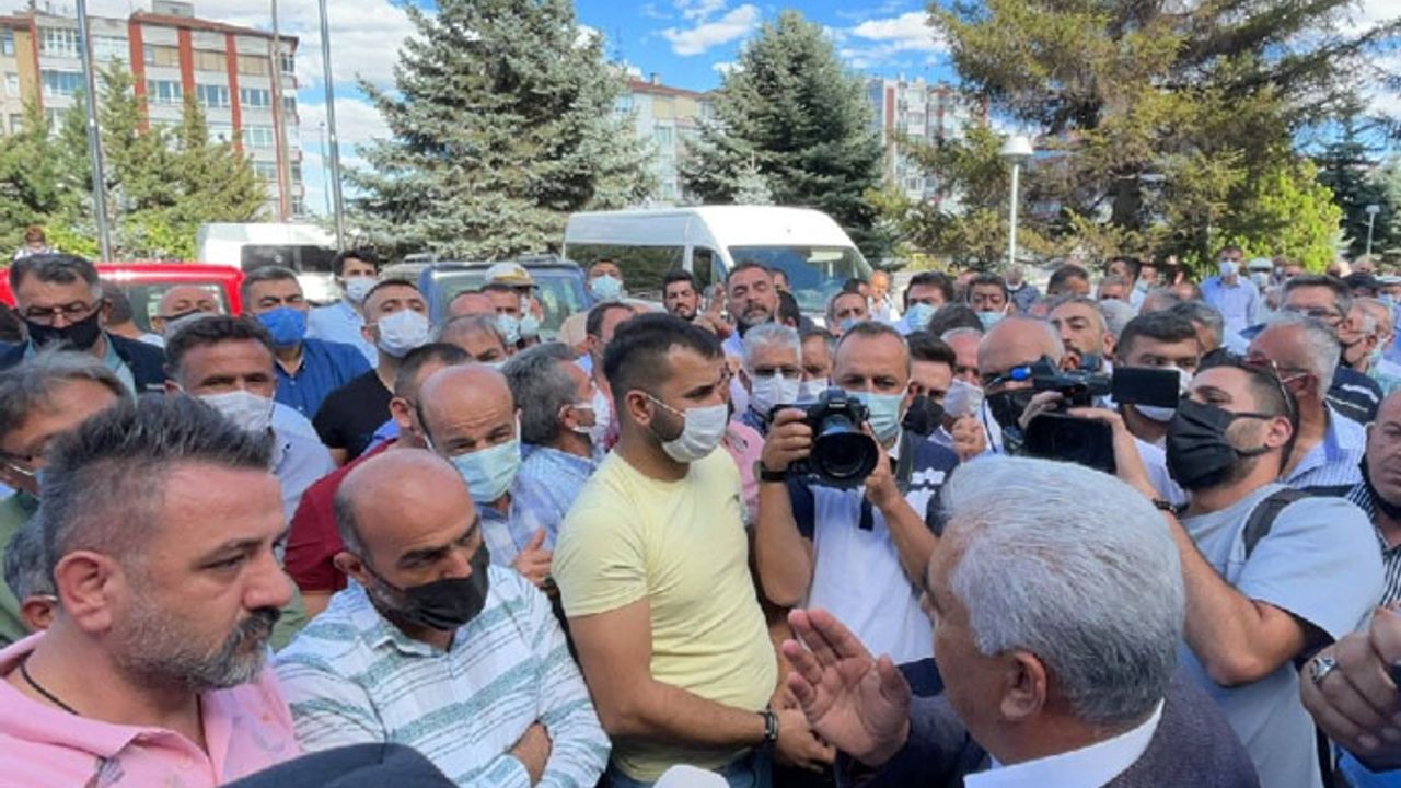 Kayseri’de özel halk otobüsü işletmecileri hak ettiklerini alamadıkları ve verilen sözlerin tutulmadığı gerekçesiyle Kayseri Büyükşehir Belediyesi binası önünde toplandı. AKP'li başkan ile görüşemeyen işletmeciler, "Biz ekmeğimizin derdindeyiz. Kimse esnafı düşünmüyor. Zarar ediyoruz. Bu kadar polis nedir? İnsan vatandaşından korkar mı? Oy isterken geliyorsunuz ama..." diye tepki gösterdi.