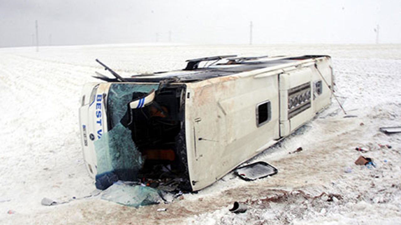 Kayseri'nin Pınarbaşı ilçesi yakınlarında, buzlanan yolda sürücüsünün kontrolünden çıkan yolcu otobüsünün devrilmesi sonucu meydana gelen kazada 23 kişi yaralandı.