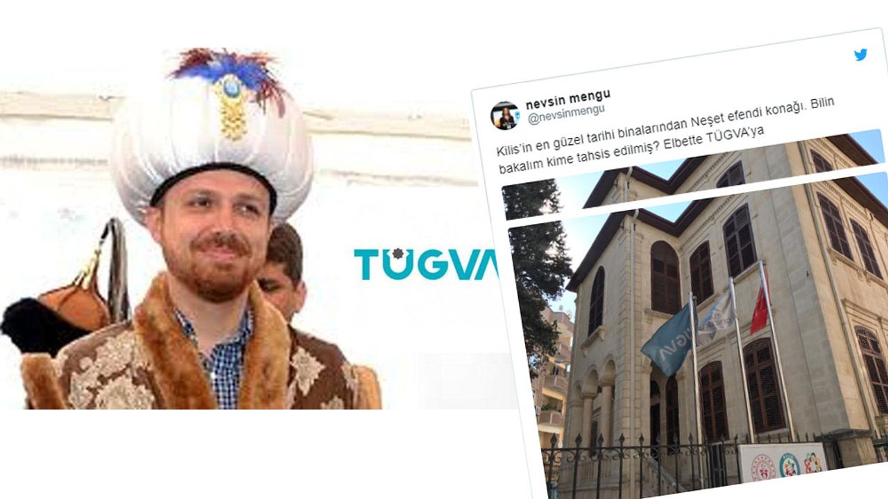 Sosyal medya gündem olan tahsisi gazeteci Nevşin Mengü'de twitter üzerinde yaptığı paylaşımla duyurdu. Mengü, "Kilis’in en güzel tarihi binalarından Neşet efendi konağı. Bilin bakalım kime tahsis edilmiş? Elbette TÜGVA’ya" diye tepki gösterdi.