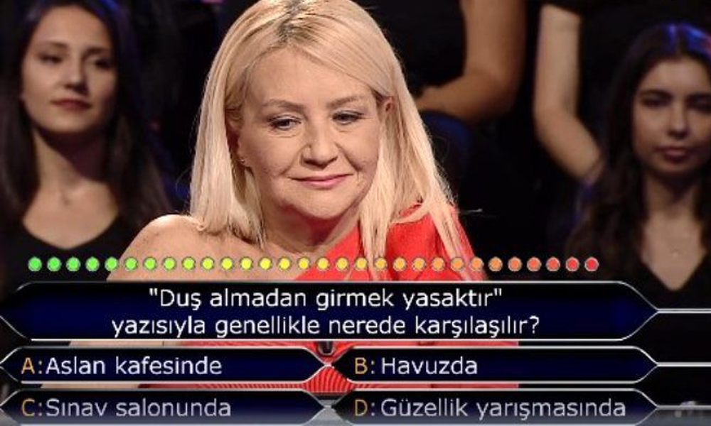 Murat Yıldırım’ın yeni dizi projesi nedeniyle Kim Milyoner Olmak İster’i bırakmasının ardından Kenan İmirzalıoğlu’nun sunumuyla yeniden ekranlara dönen ATV’nin sevilen yarışması, dün akşam 836. bölümüyle ekranlara geldi. Ece Şenbülbül isimli yarışmacısı ise geceye damga vurdu. Kim Milyoner Olmak İster’de her soruyu kendisinden emin bir şekilde cevaplayan yarışmacı Ece Şenbülbül, ”Geçen aydan önceki ay Mart ise önümüzdeki aydan sonraki ay nedir?” sorusunun cevabını bilemeyince verdiği tepki ile herkesi şaşırttı.Şenbülbül, yanlış yanıt verdiği sorunun doğru cevabına bakarak bir süre güldü ve ”Sarışınlığım tuttu” dedi.