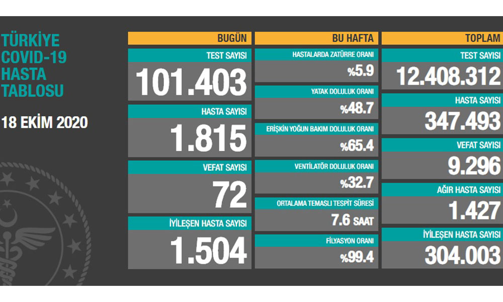 18 EKİM 2020 KORONAVİRÜS TABLOSU