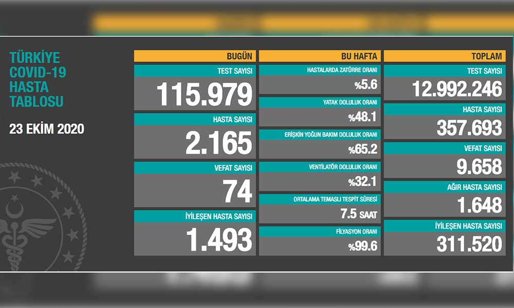 23 Ekim: 357 bin 693 hasta, 9 bin 658 ölü