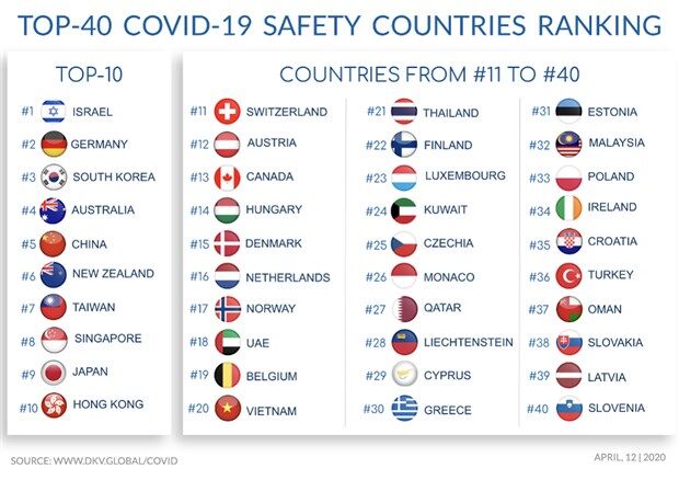Liste hazırlanırken ülkelerin aşı geliştirme kapasitesi, sağlık sektörünün gücü ve ekonomileri baz alındı. Listenin ilk 3 sırasında İsrail, Almanya ve Güney Kore yer alırken; bu ülkeleri Avustralya ve koronavirüsün çıkış noktası olan Çin izledi.