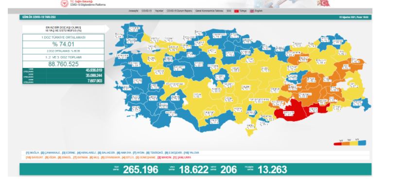 Sağlık Bakanlığı'nın internet sitesinde yer alan Türkiye Günlük Koronavirüs Tablosu'nun güncel verileri paylaşıldı.