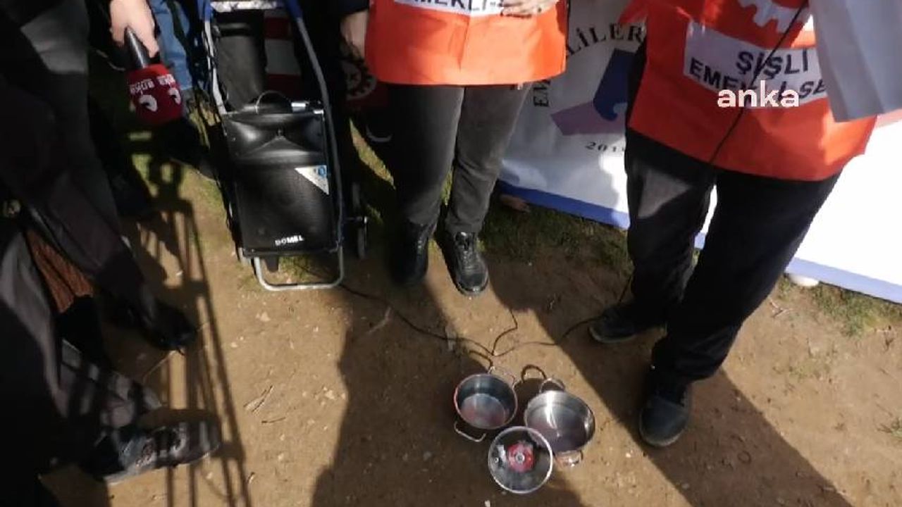 DİSK Emekli-Sen Şişli ve Beyoğlu Şube Başkanı Hasan Karakazan da çadır önünde temsili olarak eline küçük tencereleri alarak “Hani diyorlar ya, dilimleri küçültün diye. Küçülte küçülte tencereler bu kadar oldu. Bununla 4 kişilik bir aile nasıl doyacak? İçinde hiçbir şey yok. Koyamıyoruz çünkü. Sudan başka kaynatamıyoruz. Et nereden alabileceğiz ki? Suyu kaynatıyoruz. Çocuklarımıza çorba diye bunu içireceğiz. Utansın bu hükümet” diye tepki gösterdi.