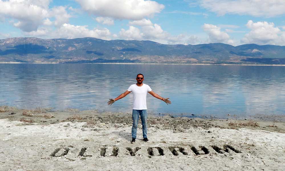 Burdurlu Ali İbrahim Öcal (38), hazırlık aşamasında olduğu projenin ilk çalışmasını Burdur Gölü kumsalında yaptı. Göl kıyısının kuruyan bir alanını kazıyarak, 'ölüyorum' yazan Öcal, "Gölün dilinden kendi ölümünün çığlığını bu şekilde yazdım. Umarım bu feryadı duyurmak adına, farkındalık için bir desteğim olur" dedi.