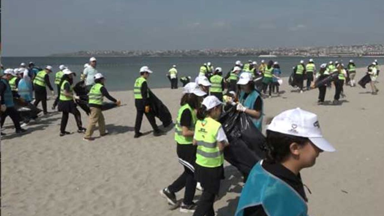 8 Haziran Marmara Denizi Günü kapsamında gerçekleştirilen etkinlikte Büyükçekmece sahiline atılan tonlarca çöp öğrenciler tarafından toplandı.