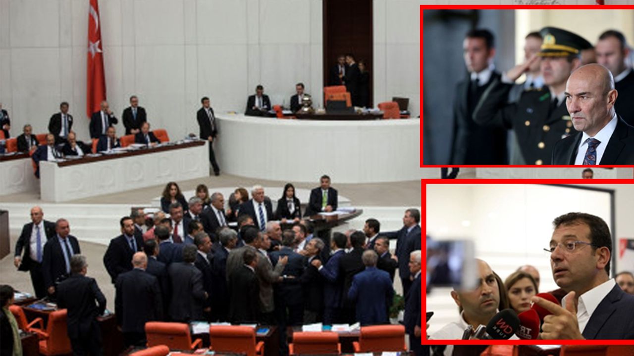 "İstanbullu seçmenin yerel seçimlerde iktidara demokrasi tokadı attığını" belirten Özel, "Bu anlayış, emlak vergileri belediyeye giderken, lüks konut vergisi diye vergi alıp onu genel bütçeye koyuyor ki İstanbul, Ankara büyükşehir belediyeleri CHP'nin elinde diye... Hizmet etme imkanları ortadan kalksın." sözlerini sarf etti. Hükümetin, Ekrem İmamoğlu'nun çalışmalarını engelleyerek İstanbullu'ya hizmet edilmesini de önlediğini söyleyen Özel, "Fransa, İngiltere'de şehirleriyle özdeşleşmiş binaları, meydanları o belediyelere mi veriyorlar, yoksa Macron'un, İngiltere'yi yöneten başbakanın çocuğunun vakfına mı veriyorlar?" sorusunu yöneltti. "İmamoğlu'nu seçimlerde yenemeyen iktidarın, saltanat düzeni üzerinden yenmeye çalıştığını" söyleyen Özel, söz konusu ihalenin bir sonraki aşamasında açık artırmanın yapılacağını ancak Kültür AŞ'nin ilk aşamada elendiğini ifade etti. CHP'li Özel, Soyer'in söz konusu ifadeleri 2,5 yıl önce sarf ettiğini de söyledi. Grup başkanvekillerinin konuşmaları sırasında AKP ve CHP milletvekilleri arasında laf atmalar yaşandı.
