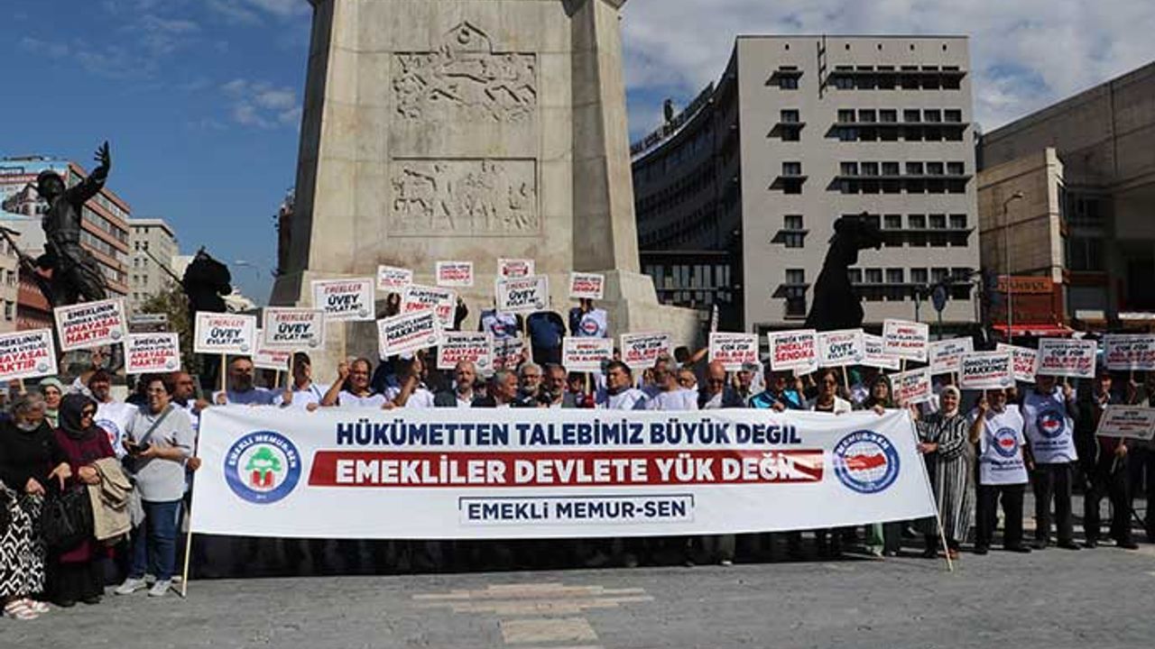 Emekli Memur-Sen üyeleri Altındağ'ın Ulus semtindeki Zafer Anıtı önünde basın açıklaması yaptı. 'Hükümetten talebimiz büyük değil, emekliler devlete yük değil' yazılı pankart taşıyan grup, 'Yılların emeği yok sayılmasın', 'Yasa, statü istiyoruz' diye slogan attı.