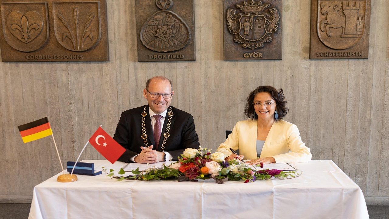 Avrupa Konseyi Kongresi Yerel Yönetimler Meclisi Başkanı ve Sindelfingen Belediye Başkanı Dr. Bernd Vöhringer ile Menteşe Belediye Başkanı Şehir Plancısı Gonca Köksal Aras tarafından imzalanan protokol, kültürden dijital dönüşüme pek çok alanda iş birliğini kapsıyor.