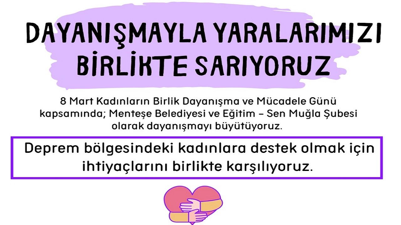 Menteşe Belediye Başkanı Gonca Köksal, deprem bölgesindeki kadınlara yönelik düzenlenen dayanışma kampanyası hakkında yaptığı açıklamada; "Kadın dayanışması, en zor zamanlarda bile umudu yeşerten en büyük güçtür. Deprem bölgesine yapılacak küçük bir destek, büyük bir fark yaratacaktır. Halkımızı bu anlamlı dayanışmaya katkıda bulunmaya davet ediyorum" dedi.