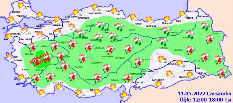 Meteoroloji Genel Müdürlüğü’nün haftalık raporunda ise 11 – 17 Mayıs tarihlerinde hava sıcaklıklarının Perşembe gününden itibaren iç ve doğu kesimlerde artacağı ve mevsim normalleri civarında, hafta sonunda kuzey ve doğu kesimlerde yer yer mevsim normalleri üzerinde seyredeceği tahmin ediliyor.