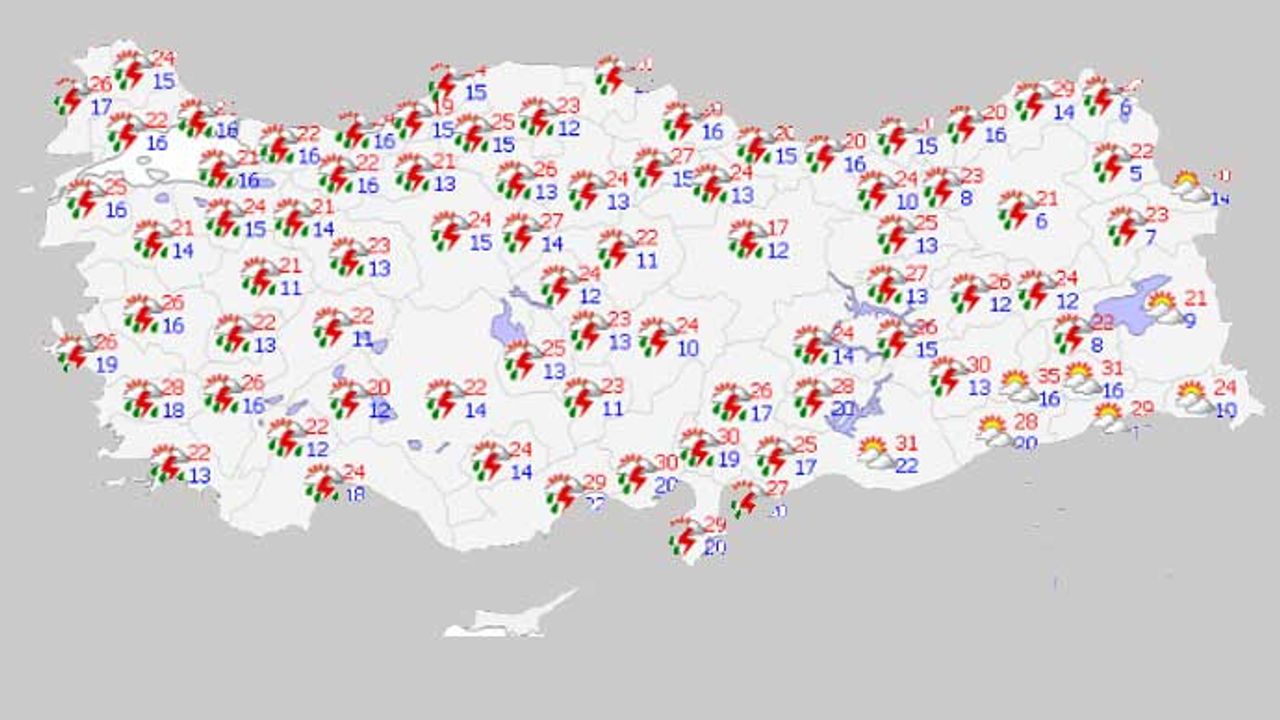 Meteoroloji Genel Müdürlüğü tarafından yapılan son değerlendirmelere göre seçim günü ülke genelinin parçalı ve çok bulutlu, Marmara, Ege, Akdeniz, İç Anadolu, Karadeniz, Doğu Anadolu (Şırnak ve Hakkari hariç), Güneydoğu Anadolu’nun kuzeyi, Gaziantep ve Kilis çevreleri ile Van’ın batı kesimlerinin sağanak ve gök gürültülü sağanak yağışlı geçeceği tahmin ediliyor.