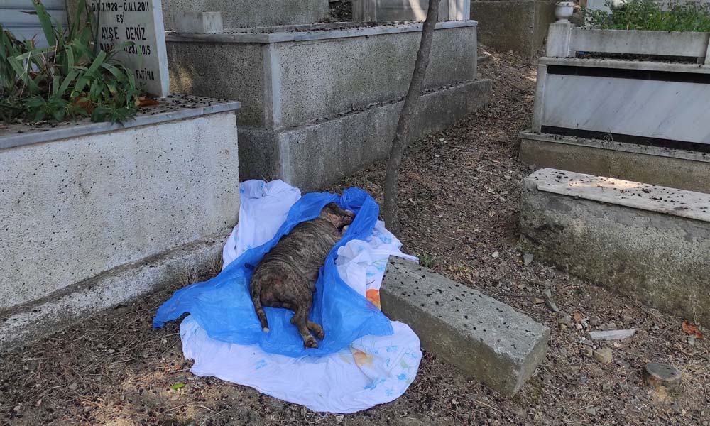 Olay, Feriköy Mezarlığı'nda sabah erken saatlerde meydana geldi. Mezarlığın Sıracevizler Caddesi girişindeki bir mezarın kenarına bırakılmış, çarşaf ve poşete sarılı cisim gören bir kişi, insan cesedi olabileceği düşünerek polise ihbarda bulundu. Harekete geçen ekipler, kısa sürede olay yerine gelerek güvenlik önlemi aldı. Yapılan incelemede, çarşaf ve poşet içindeki cesedin bir köpeğe ait olduğu belirlendi.