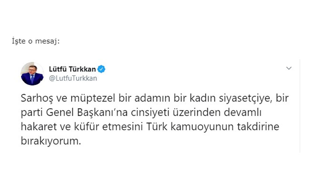 MHP’li Semih Yalçın, Meral Akşener için “Kucağına oturduğun CHP ile arana mesafe koy” derken şöyle tehdit göndermesinde bulunmuştu: “Kavga, kaos ve istenmedik olaylara yol açabilecek; masum insanların birbirine girmesine, kan akmasına yol açabilecek kışkırtmalar tehlikelidir, ateşle oynamaktır.” MHP’li Yalçın’a yanıt İYİ Parti Grup Başkanvekili Lütfü Türkkan’dan gelmişti. Türkkan sosyal medya hesabından yaptığı açıklamada Yalçın için şu ifadeleri kullanmıştı: “Sarhoş ve müptezel bir adamın bir kadın siyasetçiye, bir parti Genel Başkanı’na cinsiyeti üzerinden devamlı hakaret ve küfür etmesini Türk kamuoyunun takdirine bırakıyorum.”