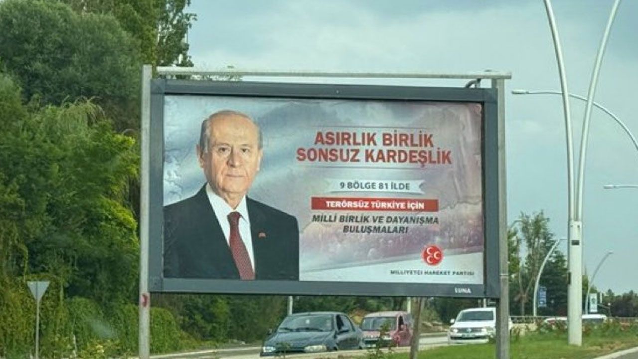 MHP lideri Devlet Bahçeli’nin fotoğrafının da yer aldığı afişlerde, miting ve buluşmaların “9 bölge 81 ilde” yapılacağı belirtildi.