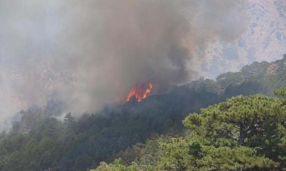 Muğla'nın Köyceğiz ilçesinde, makilik alanda başlayıp, ormana sıçrayan yangını söndürme çalışmaları sürdürülüyor. Rüzgarın şiddetini artırmasıyla Alibaba Dağı eteklerinde yangın büyüdü. Farklı noktalara sıçrayan yangın nedeniyle gökyüzünü dumanlar kapladı. Karadan müdahalenin zor olduğu bölgede, 3 uçak ve 9 helikopter ile söndürme çalışmalarına devam ediliyor.