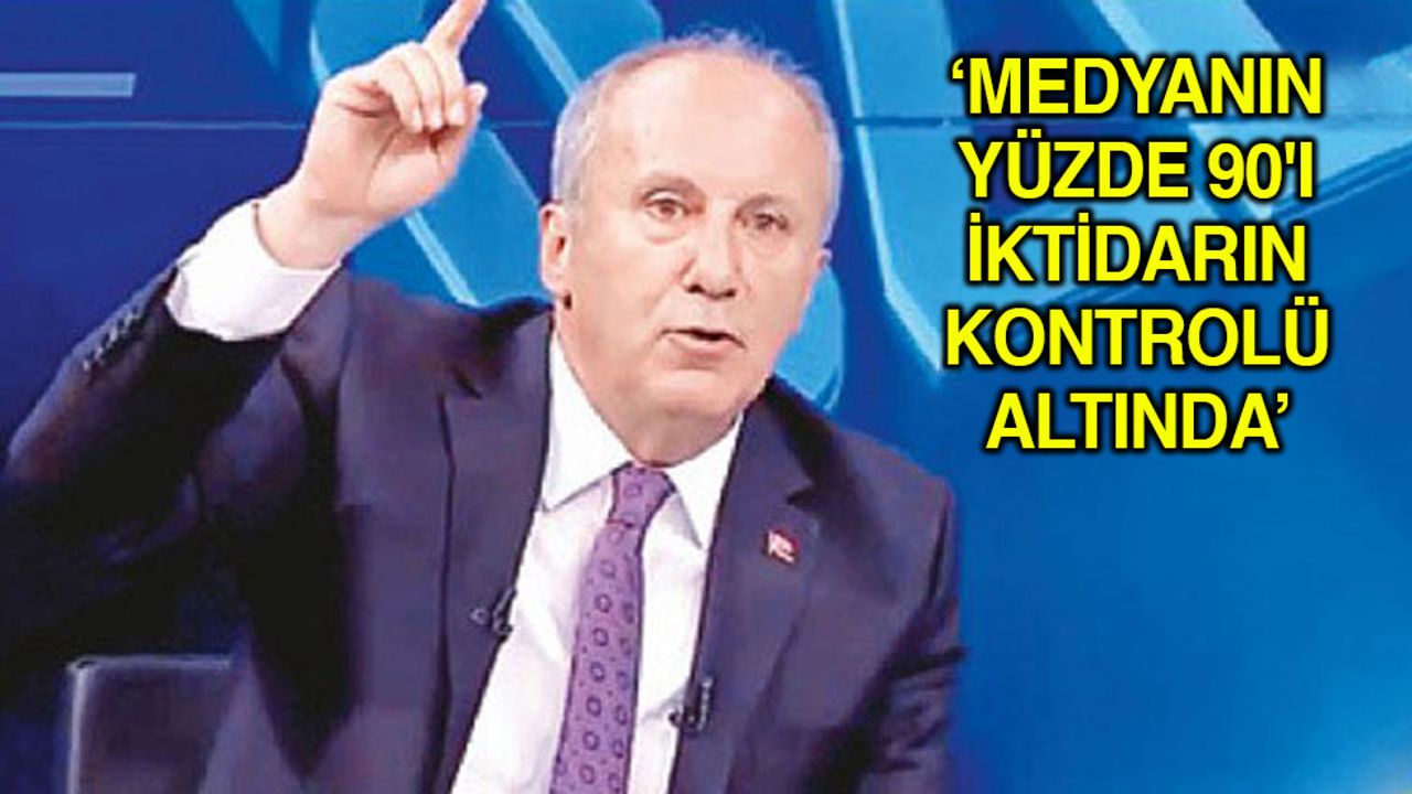 Haber Global'de, Se­nem Toluay Ilgaz'ın sunduğu programda canlı yayını terk eden Muharrem İnce, "Medyanın yüzde 90'ının AKP iktidarının kontrolü altında, beni davet ediyorsan, bekletip Erdoğan'ı veremezsin. Bu korku düzenine son vermemiz gerekiyor” dedi.
