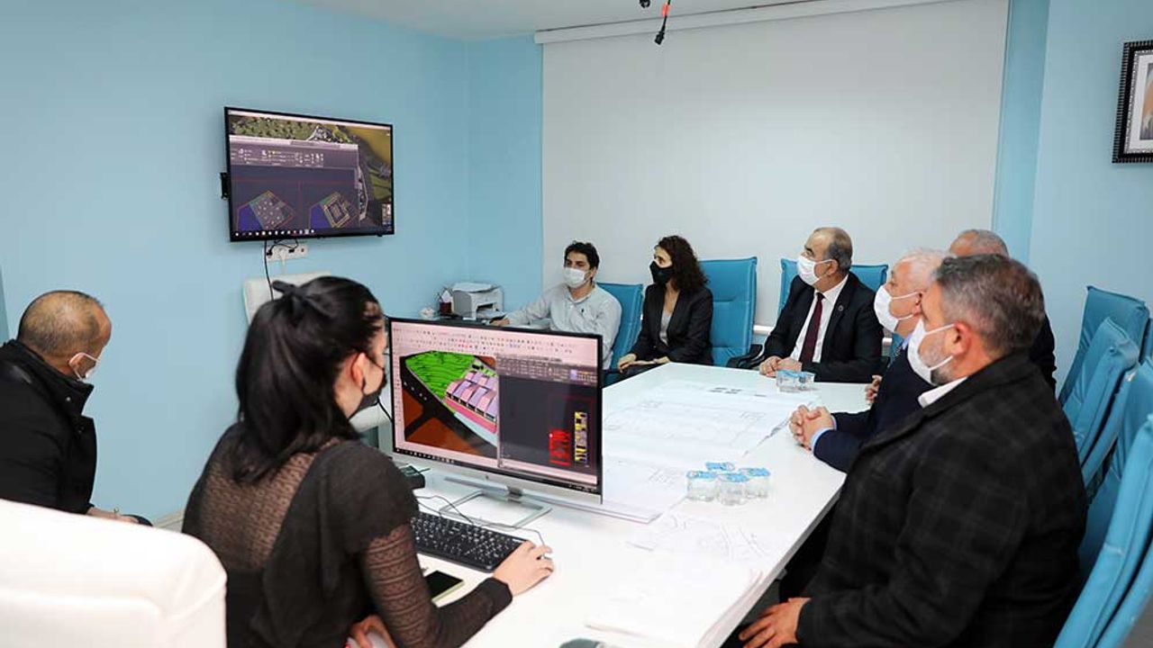 Mudanya Belediyesi’nin Halitpaşa’da planlanan Kapalı Pazar Yeri Projesi ile ilgili toplantı gerçekleştirildi. Mudanya Belediye Başkanı Hayri Türkyılmaz, Başkan Yardımcısı Nisa Kartaltepe, Fen İşleri Müdürü Sadık Sadıkoğlu, Zabıta Müdürü Taner Elyıldırım ve Mimar Cemile Öztürk‘ün de hazır bulunduğu toplantıya Bursa Seyyar Pazarcılar Odası Başkanı Ahmet Refik Aksu, Başkan Vekili Ergin Birdal ve Bursa Yaymacılar Odası Başkanı Fahrettin Tüccaroğlu katıldı. Halitpaşa mahallesinde 3 bin 137 metrekarelik arazi üzerine yapılacak pazar alanında, kapalı otopark, sosyal tesisleri, tuvaletler, mescit, emzirme odası bulunacak. Oda temsilcilerinin ve pazarcı esnafını görüşlerini önemsediklerini belirten Mudanya Belediye Başkanı Hayri Türkyılmaz, “ortak akıl, birlikte yönetim” ilkesini uyguladıklarını söyledi. Mudanyalıların sağlıklı, çağdaş ortamlarda alışveriş yapmaları için çalıştıklarını vurgulayan Türkyılmaz, “Oda temsilcilerinin görüşlerini dikkate alarak, projemize yön veriyoruz. Hazırladığımız projemizde ihale aşamasına geldik. Kapalı Pazar Yeri projemizi bir an önce hayata geçirerek Mudanyalıların hizmetine sunacağız” diye konuştu.