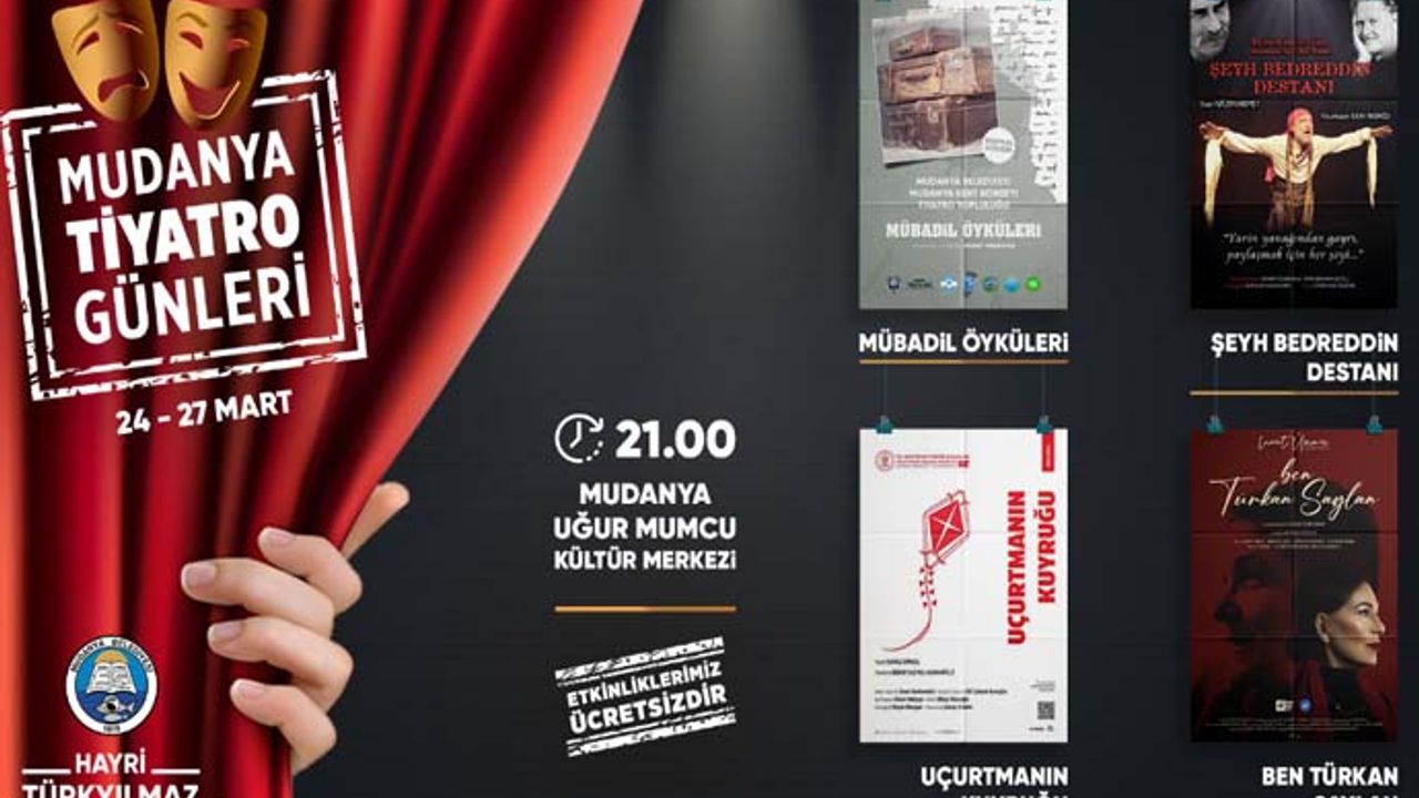 Kültür ve sanatı herkes için ulaşılabilir kılan Mudanya Belediyesi, Dünya Tiyatro Günü kapsamında 24-27 Mart tarihlerinde 4 farklı oyunu tiyatroseverlerle ücretsiz olarak buluşturuyor.