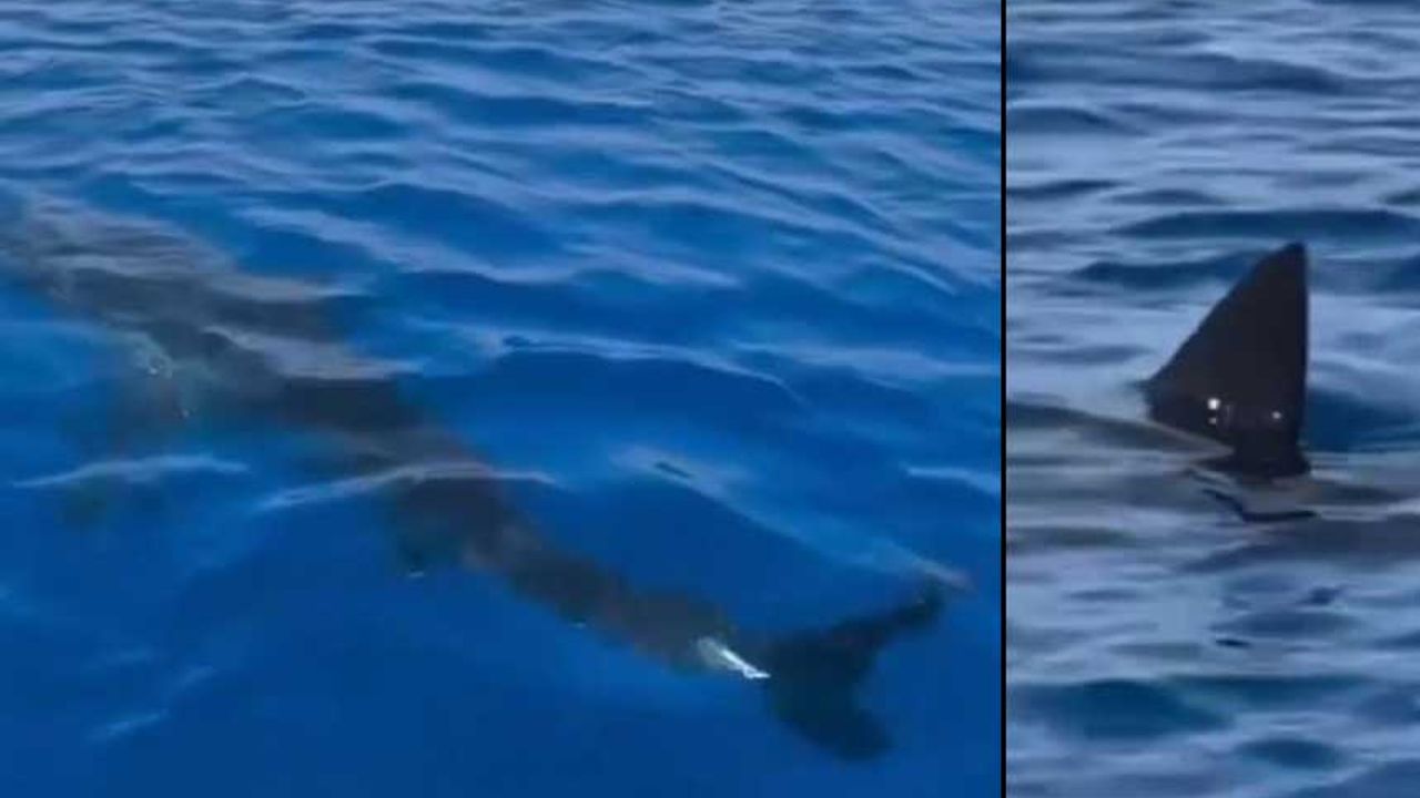 Muğla’nın Ula ilçesine bağlı Gökova Körfezinde bulunan Tuzla Koyu'nda tekne turuna çıkan bir grup turist, deniz yüzeyinde bir anda devasa boyutlarda bir köpek balığıyla karşılaştı.
