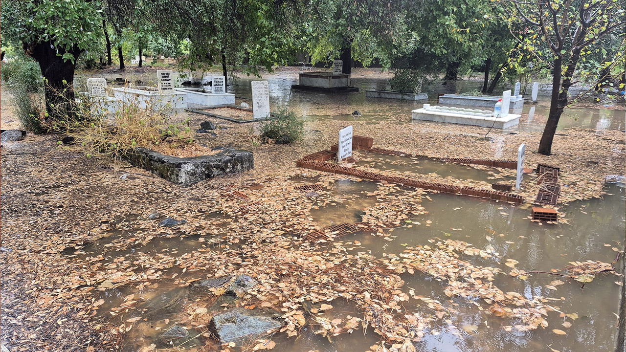 Merkez mezarlığında birçok kabir sular altında kaldı. İlçede yağış nedeniyle zaman zaman hasarlı kazalar da yaşandı.