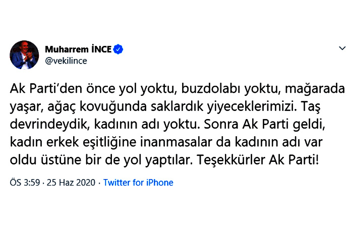 CHP'li Muharrem İnce, AKP Grup Başkanvekili Özlem Zengin'in ‘Bu ülkede AK Parti gelene kadar kadın kelimesi yoktu Türkiye’de’ sözlerini kendine has üslubu ile tiye aldı .