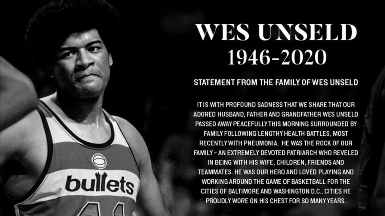 Amerikan Basketbol Ligi (NBA) takımları Washington Wizards ve Baltimore'un efsane oyuncularından Wes Unseld 74 yaşında yaşamını yitirdi.