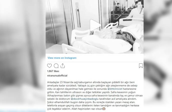 Konuyla ilgili Instagram hesabından paylaşım yapan Niran Ünsal, ameliyathaneden çıkarken çekilen videosunu paylaştı.