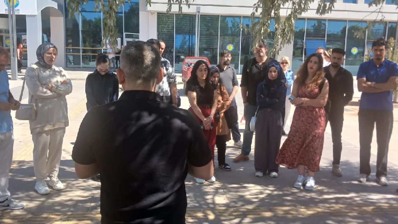 Harran Üniversitesi'nde yaklaşık bir hafta önce başlayan 2025-2026 akademik yılında, fakültede yeterli derslik bulunmadığı için bazı bölümlerde derslere başlanamadı. Bu nedenle akademisyenler, öğrencileri fakülte bahçesinde topladı.