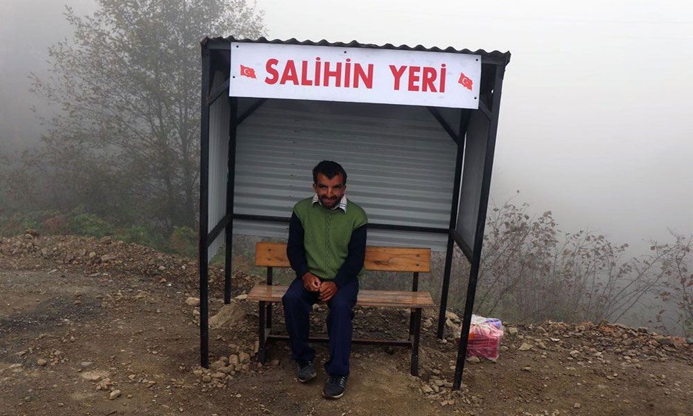 Kaymakam Özdemir, bir hafta önce kırsal mahallelere yaptığı ziyaretinde yol kenarında yoğun yağmurun altında, geçen araçlara el sallayan özürlü Salih Belen'i (27) fark etti. Belen'in yaz kış, yağmur çamur demeden geçen araçlara el salladığını öğrenen Kaymakam Özdemir, harekete geçti ve Salih için özel bekleme durağı yaptırdı.
