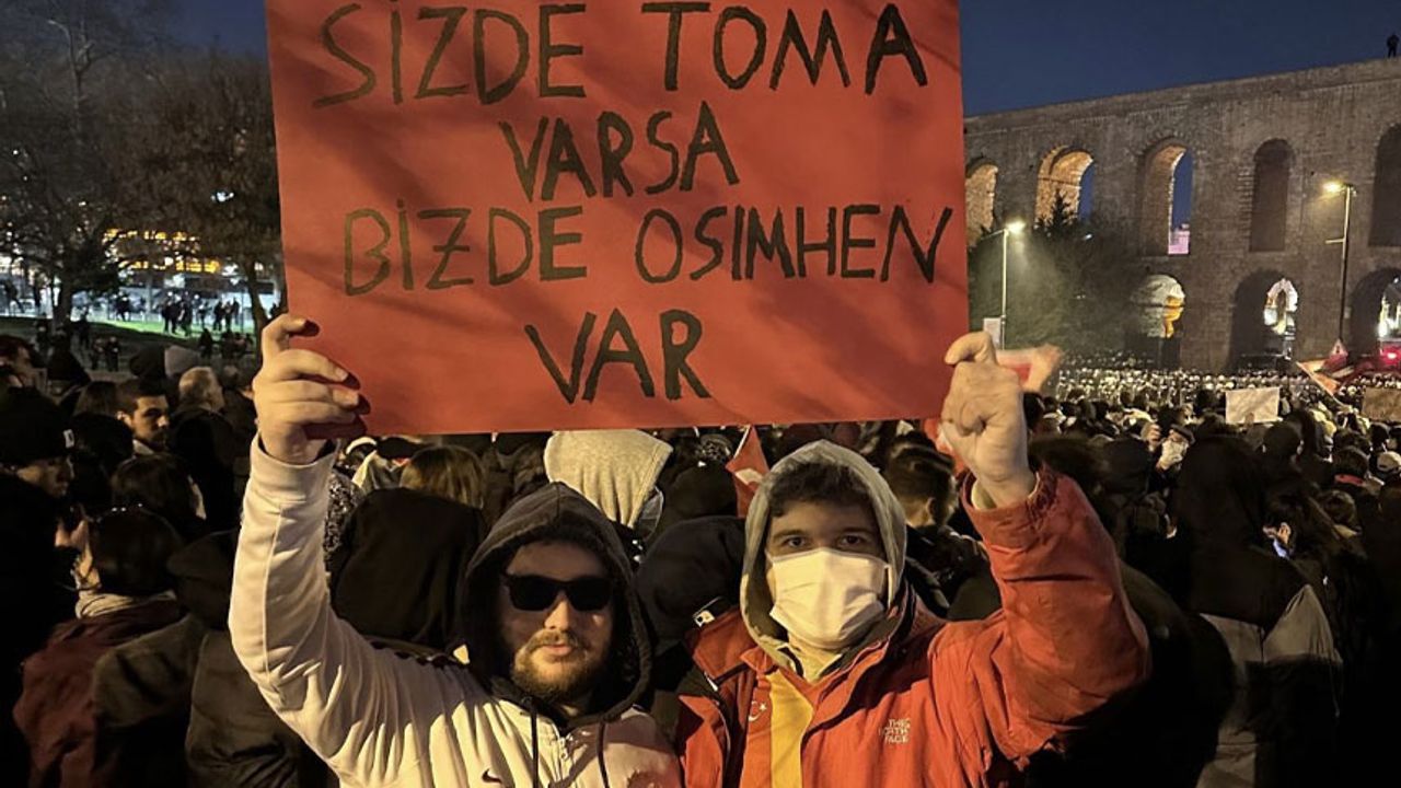Saraçhane eylemlerinde açtıkları Osimhen dövizi nedeniyle gözaltına alındıktan sonra tutuklanan Berke Doğu Türker ve Ege Arifoğlu, İstanbul Adliyesi'nde 32. Asliye Ceza Mahkemesi'nde hakim karşısına çıktı.