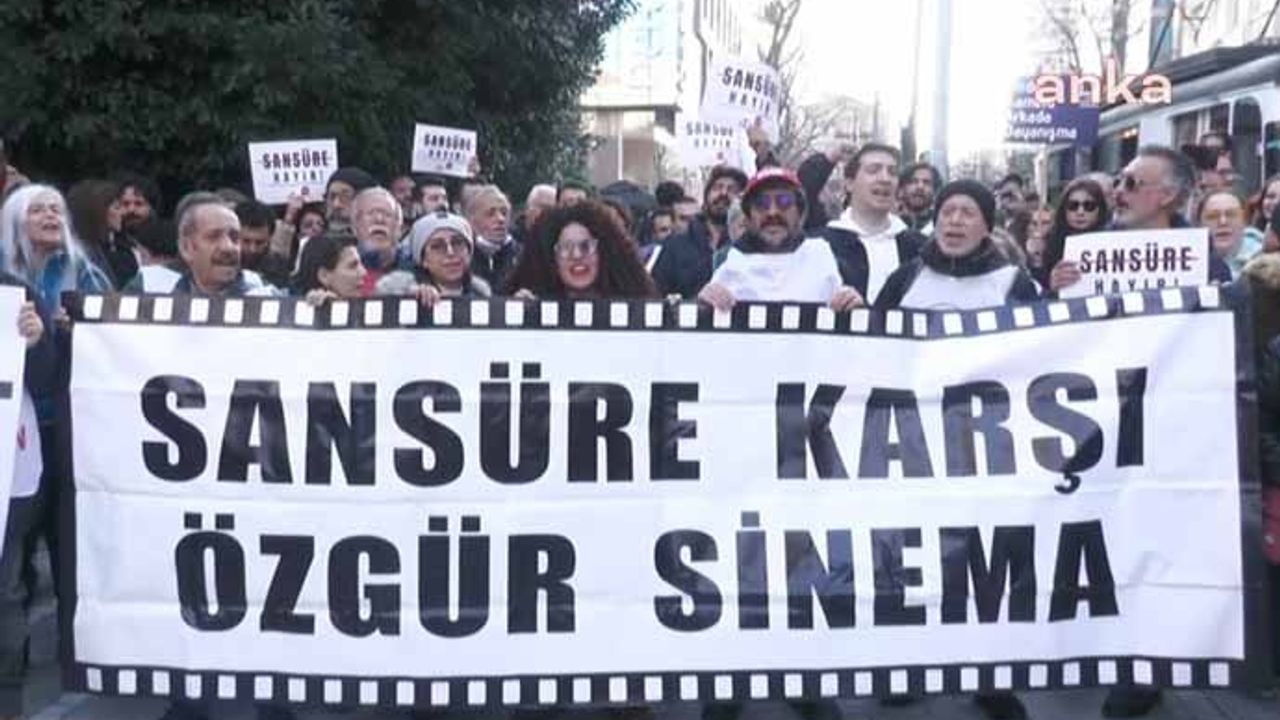 “Sansüre karşı özgür sinema” yazılı pankart açılan eylemde, “Sansüre hayır” yazılı dövizler taşınarak “Susma, haykır, sansüre hayır” ve “Kurtuluş yok tek başına, ya hep beraber ya hiçbirimiz” sloganları atıldı. Hazırlanan ortak açıklamayı okuyan Oyuncular Sendikası Yönetim Kurulu üyesi Ece Dizdar, sansür uygulamalarına bir yenisinin daha eklendiğini belirterek şunları söyledi:"BU SANSÜR UYGULAMALARIYLA İLK DEFA KARŞILAŞMIYORUZ"
