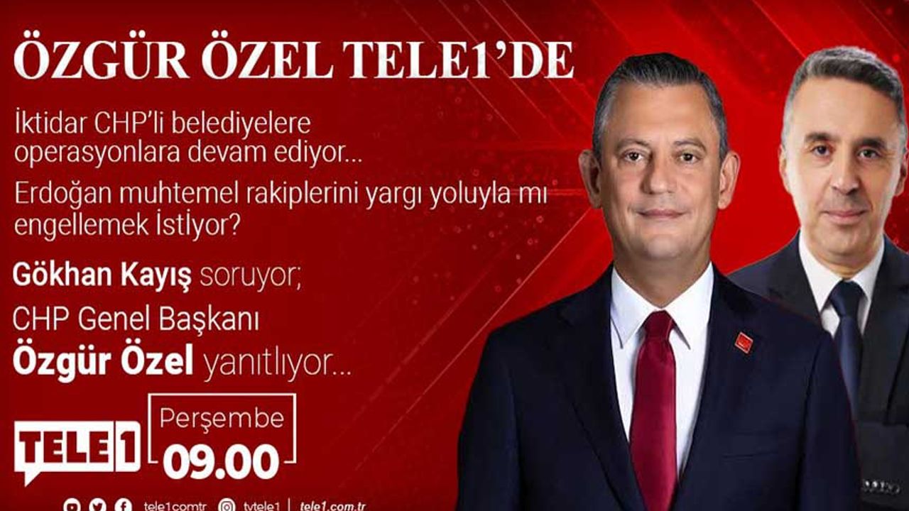 Cumhuriyet Halk Partisi Genel Başkanı Özgür Özel TELE1'de Gökhan Kayış'ın programına konuk oluyor. Özel gündeme dair en çok merak edilen sorulara yanıtlayacak. Özgür Özel saat 09:00'da TELE1 ekranlarında olacak.