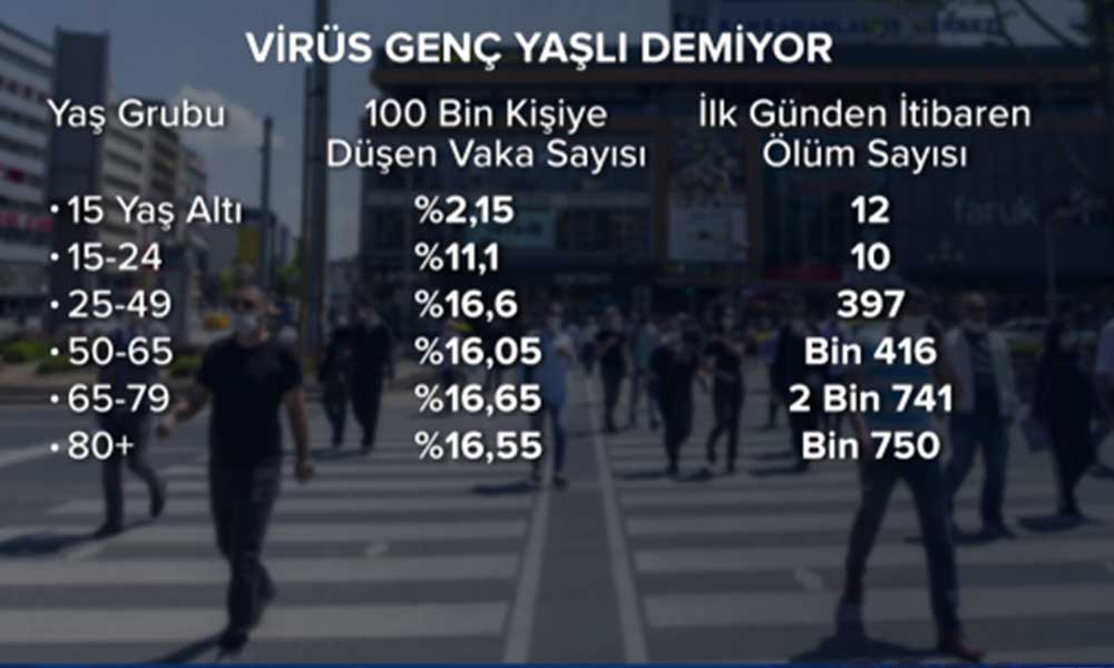 Salgının başındaki en büyük yanılgılardan biri de "virüs çocuk ve gençlere bulaşmıyor" algısıydı. Veriler bir kez daha bunun doğru olmadığını ortaya koydu. Salgının başından bu yana en çok 15-24 yaş grubu ile 65 yaş üstünün hastalığa yakalandığı görüldü. 15 yaşından küçük 12 çocuk, 15-24 yaş aralığında 10 genç ve 25-49 yaş aralığında da 397 yetişkin vefat etti.