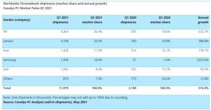 Canalys, Chromebook’ları ayrı bir kategoride tutuyor çünkü bunlar gerçekten dizüstü bilgisayarlar veya ikisi bir arada cihazlar. Ancak aynı zamanda, belirli bir hedef kitleye hitap eden farklı bir Chrome tabanlı kullanıcı arayüzüyle daha uygun fiyatlı. Cihazlar son derece tarayıcı merkezli ve bu cihazlar iş ve eğitim için mükemmel bir şekilde tasarlanmış.