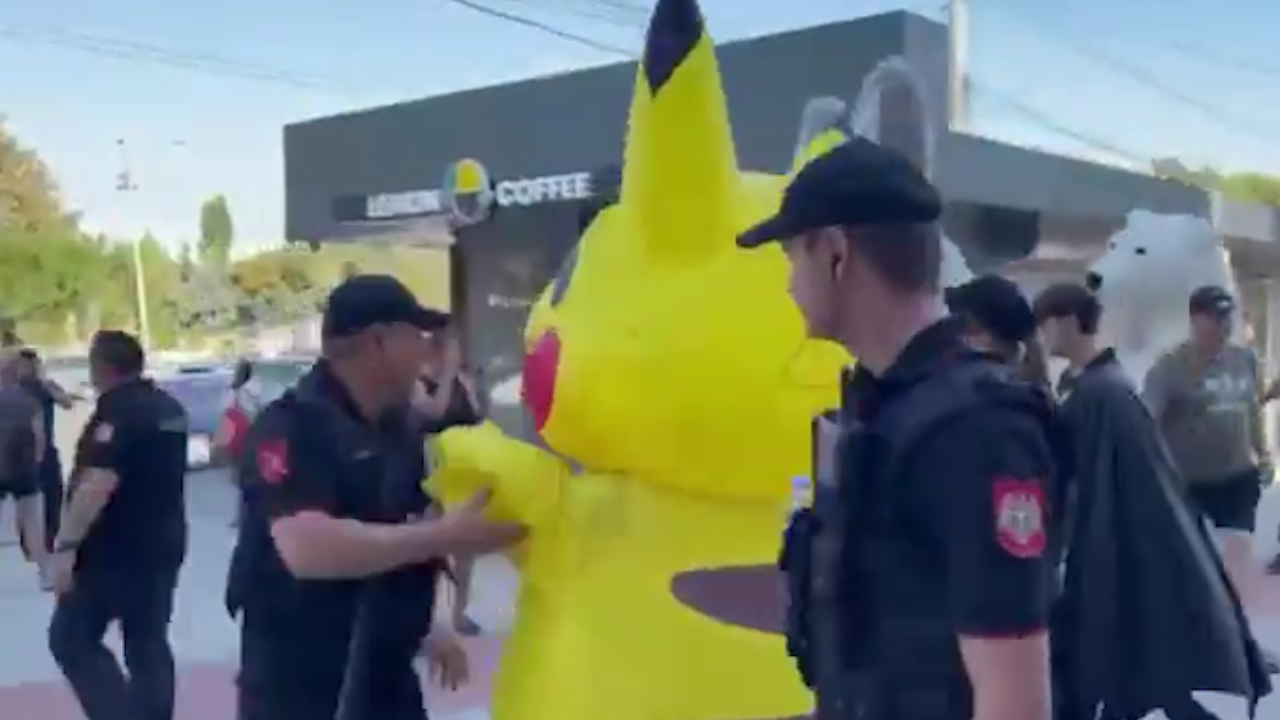 Moldova'da Zafer Bloku tarafından düzenlenen hükümet karşıtı etkinliklerde, Pikaçu kostümlü bir eylemci gözaltına alındı.
