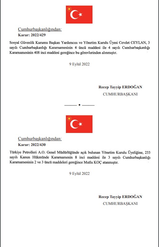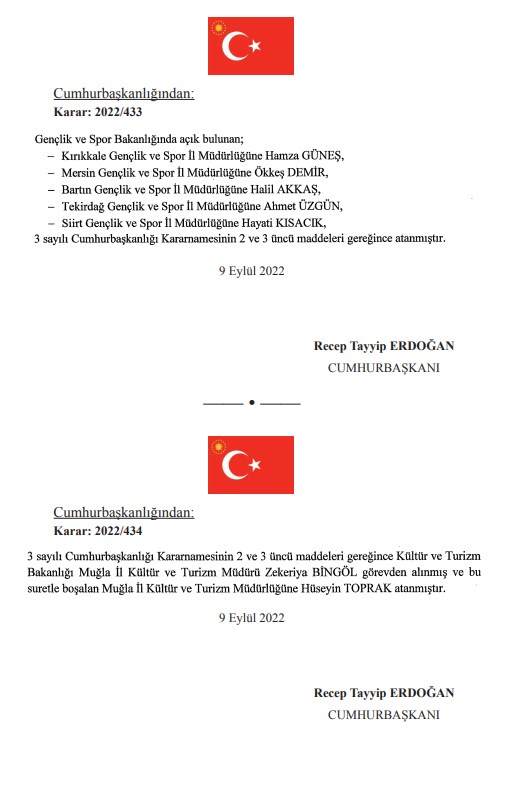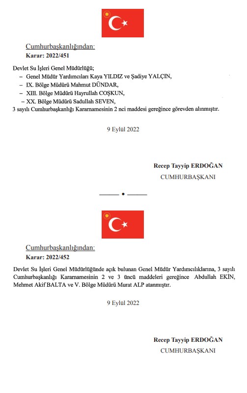 Resmi Gazete'de yayımlanan Cumhurbaşkanı kararnamesiyle çok sayıda kurumda görevden alma ve atamalar yapıldı.
