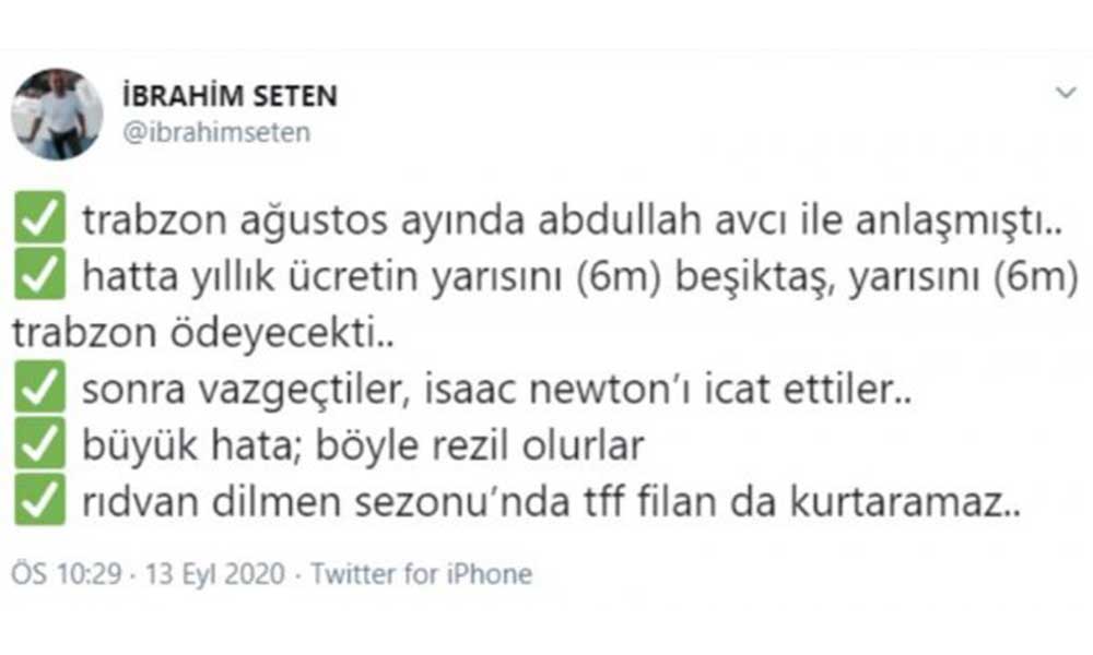 Dilmen'e karşı cephe alan bir diğer isim ise İbrahim Seten.İbrahim Seten de önceki gün yaptığı paylaşımda "Rıdvan Dilmen Sezonu'nda anca Şeytan'ın dediği olur." ifadelerini kullanmıştı.