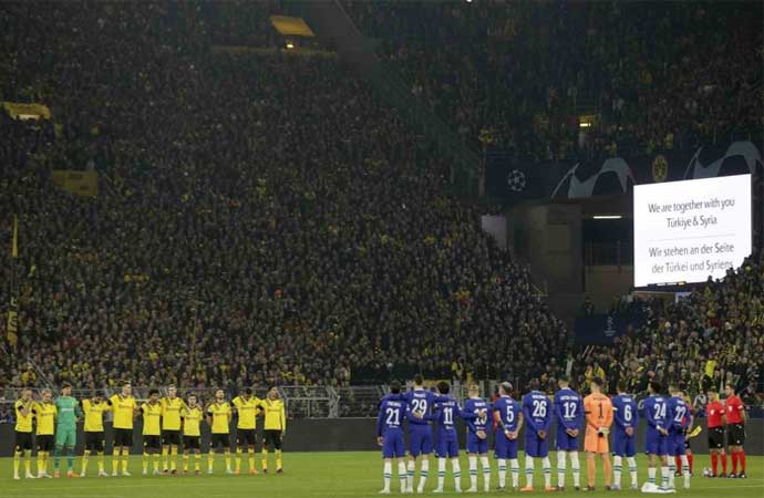 UEFA Şampiyonlar Ligi’nde oynanan B.Dortmund – Chelsea ve Club Brugge – Benfica maçları öncesi Türkiye’deki depremzedeler için saygı duruşunda bulunuldu.