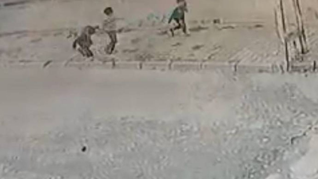 Görüntülerde çocukların evlerinin önünden eğilerek, hızla koştuğu görüldü.