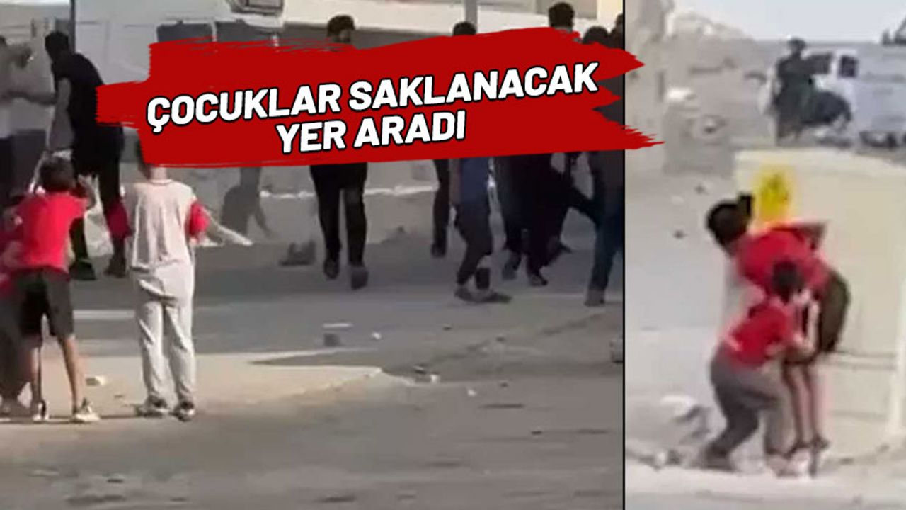 Öte yandan kavga, cep telefonu kamerasıyla görüntülendi. Görüntülerde tarafların birbirine taş ve sopalarla vurduğu ve arada kalan 2 çocuğun, kendilerini korumak için elektrik panosunun arkasına saklandığı görüldü.