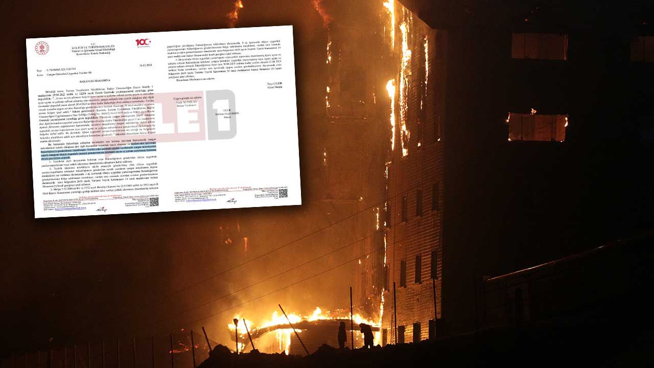 Turizm Bakanlığı'na bağlı Yatırım ve İşletmeler Genel Müdürlüğü Kontrolörler Kurulu Başkanlığı'nın yangın önlemleri uygunluk konulu belgesine göre, turizm işletmelerine ek süre tanındığı ortaya çıktı.