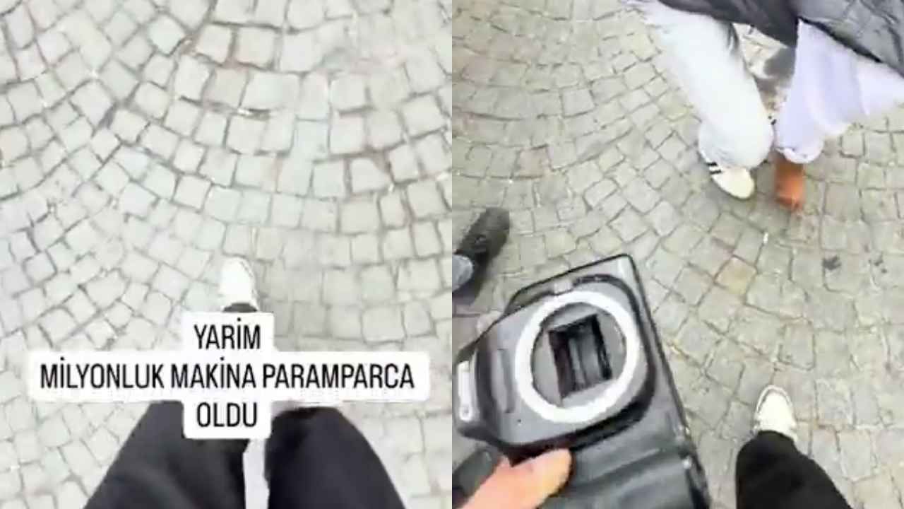 Makinenin paramparça olduğunu gören Özcan sinirlerine hakim olamadı. O anların videosu sosyal medyada gündem oldu.