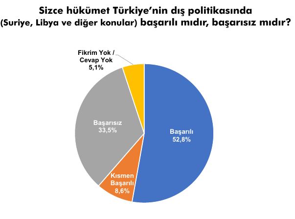 Yurttaşların, yüzde 52.8'i 'Hükümet dış politikada başarılı mıdır?' sorusuna başarılı dedi.